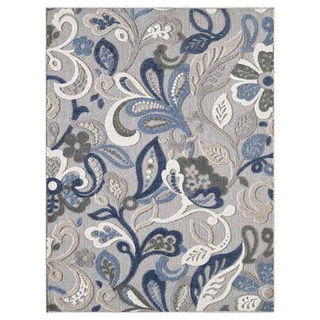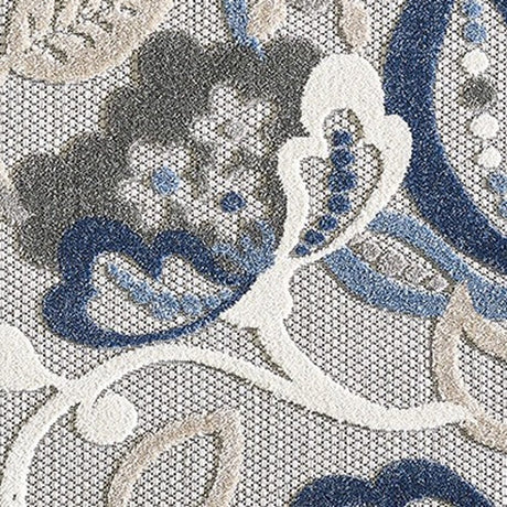 5' X 7' Blue And Gray Floral Indoor Outdoor Area Rug