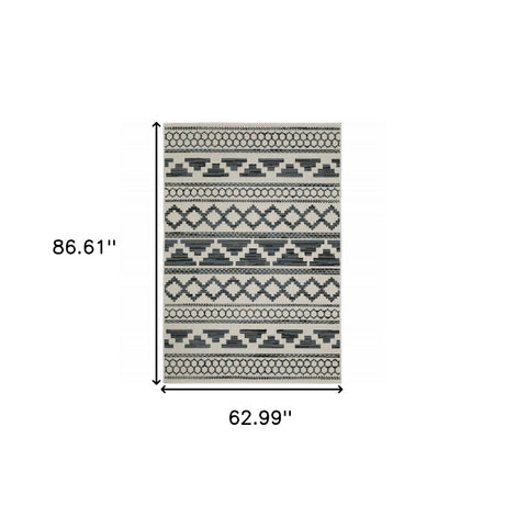 5' X 7' Blue and Beige Geometric Stain Resistant Indoor Outdoor Area Rug