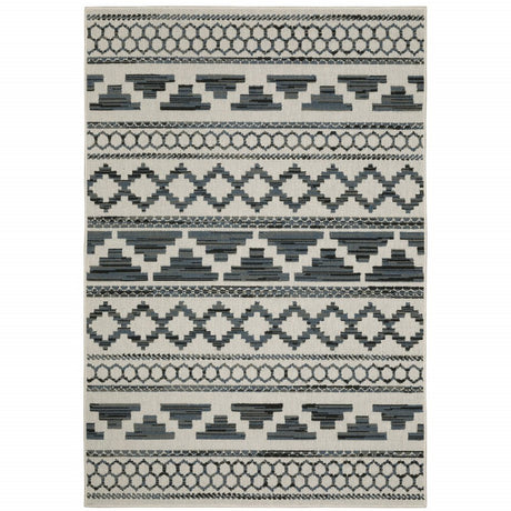 8' X 11' Gray And Ivory Indoor Outdoor Area Rug