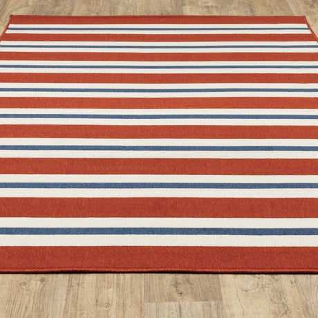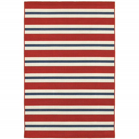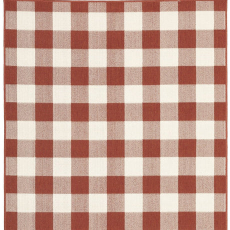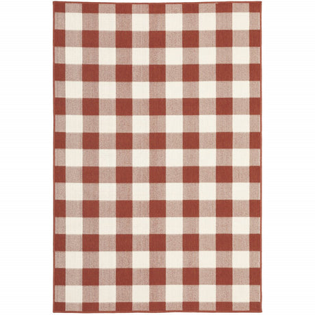 7' X 10' Red and Ivory Geometric Stain Resistant Indoor Outdoor Area Rug