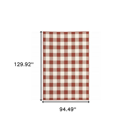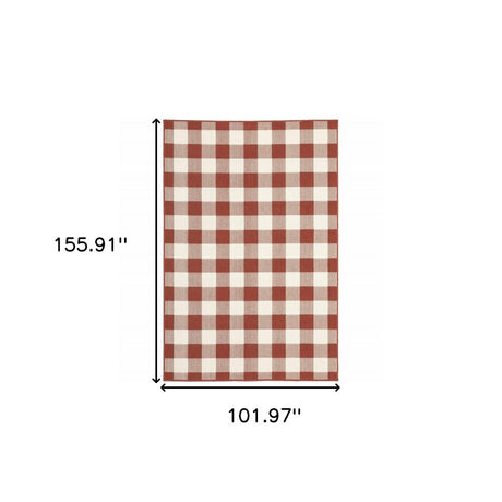 9' X 13' Red And Ivory Geometric Indoor Outdoor Area Rug