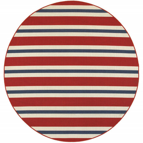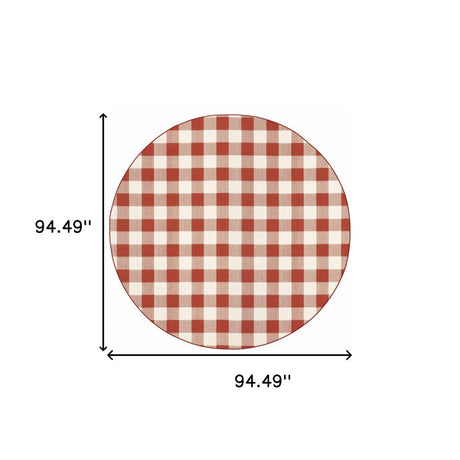 8' X 8' Red and Ivory Round Geometric Stain Resistant Indoor Outdoor Area Rug