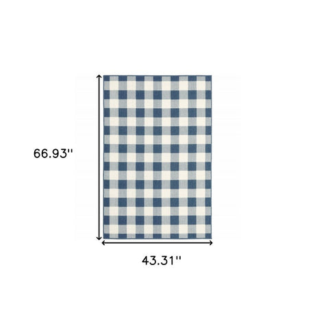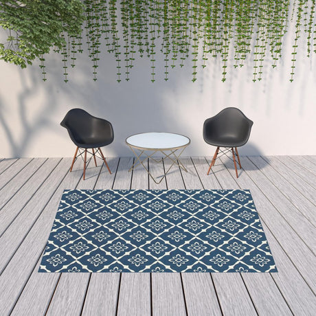 4' X 6' Blue and Ivory Geometric Stain Resistant Indoor Outdoor Area Rug