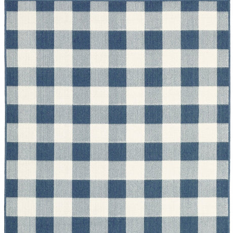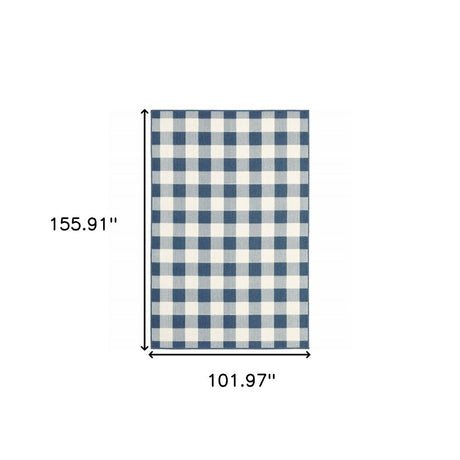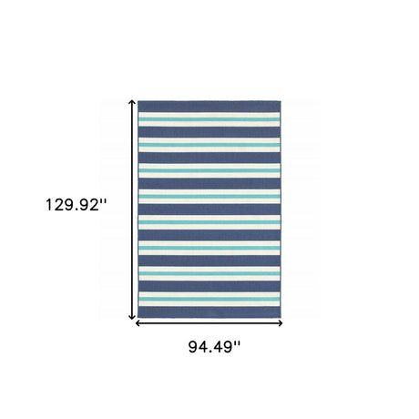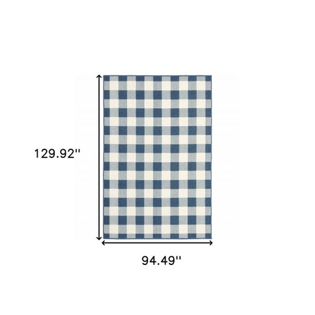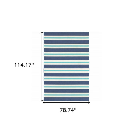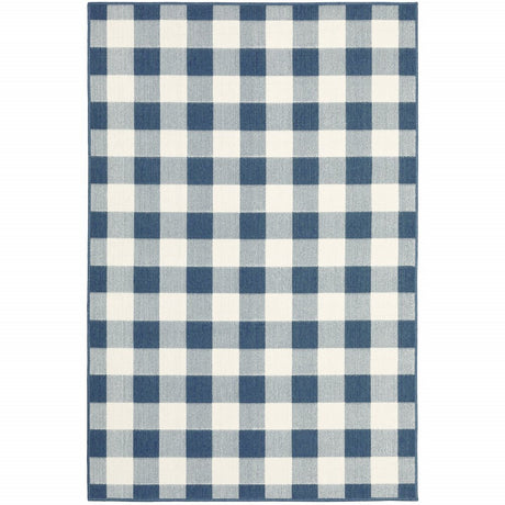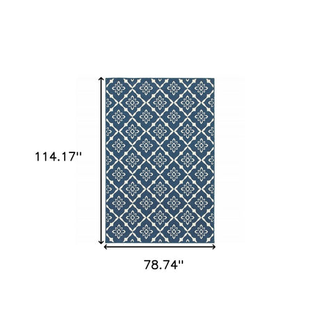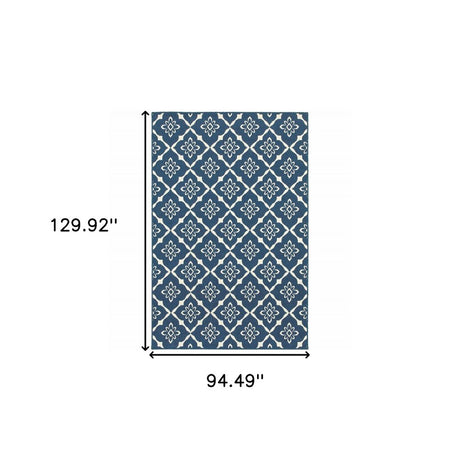 7' X 10' Blue and Ivory Geometric Stain Resistant Indoor Outdoor Area Rug