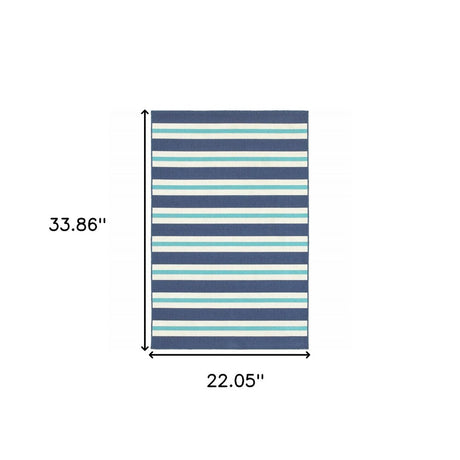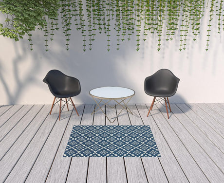 2' X 3' Blue and Ivory Geometric Stain Resistant Indoor Outdoor Area Rug