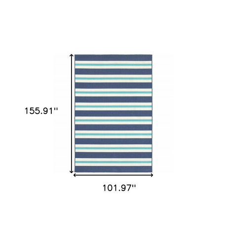 8' X 11' Blue and Ivory Geometric Stain Resistant Indoor Outdoor Area Rug