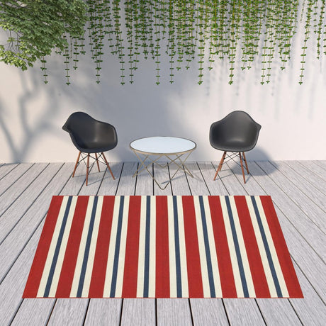 5' X 8' Red and Ivory Geometric Stain Resistant Indoor Outdoor Area Rug