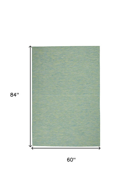 5' X 7' Blue and Green Indoor Outdoor Area Rug