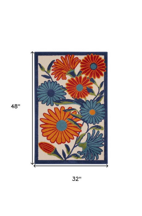 3' X 4' Ivory Orange and Blue Floral Indoor Outdoor Area Rug