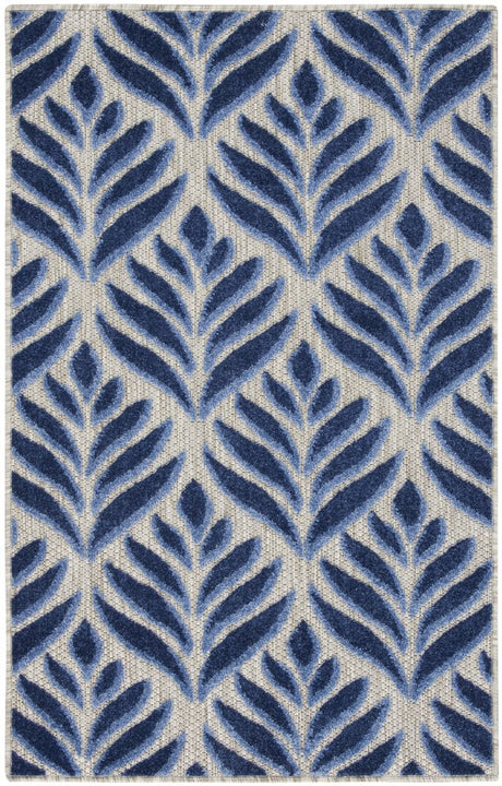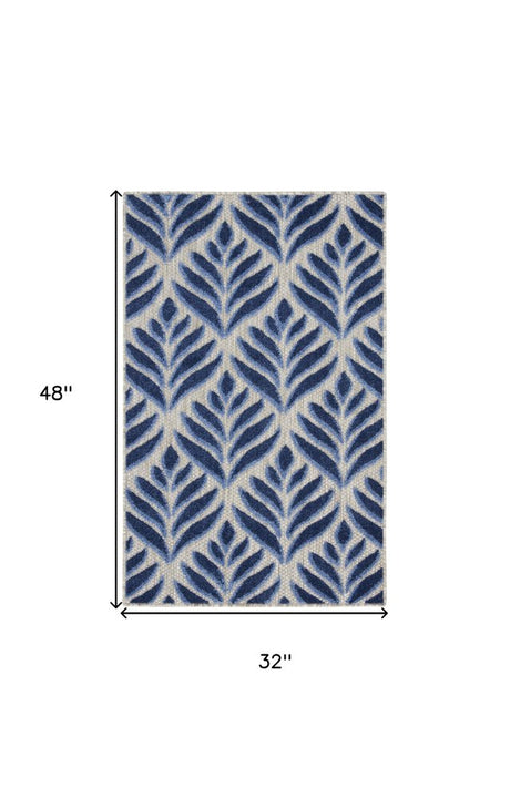 3' X 4' Blue Floral Indoor Outdoor Area Rug