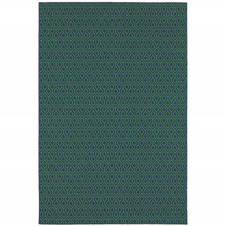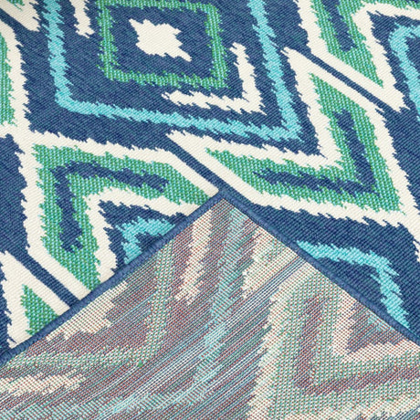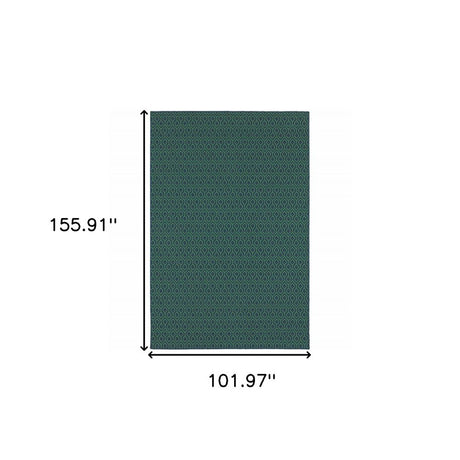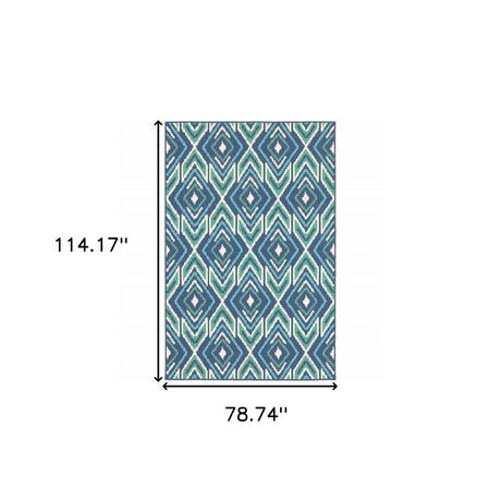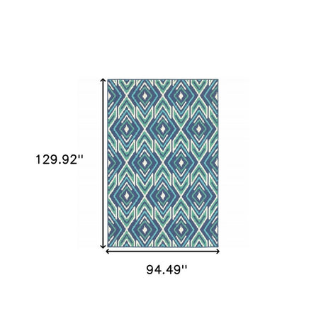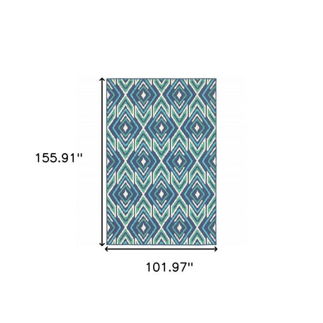 9' X 13' Blue and Green Geometric Stain Resistant Indoor Outdoor Area Rug