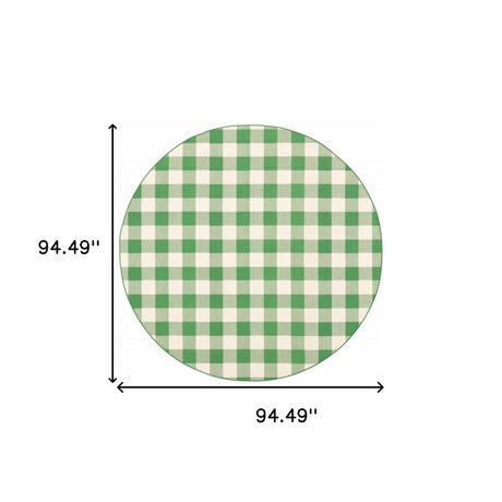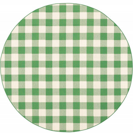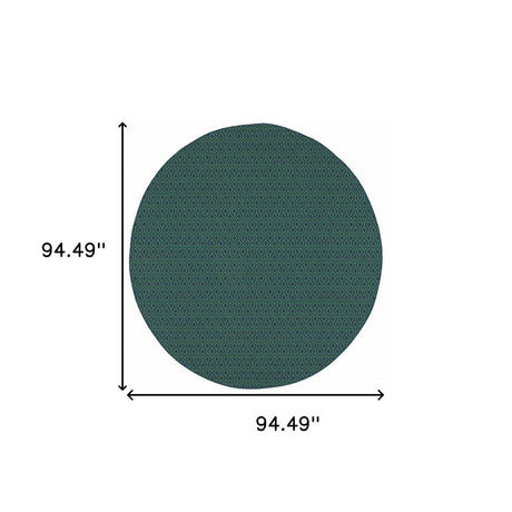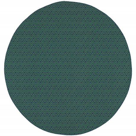 8' X 8' Green and Ivory Round Geometric Stain Resistant Indoor Outdoor Area Rug