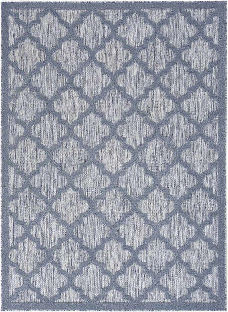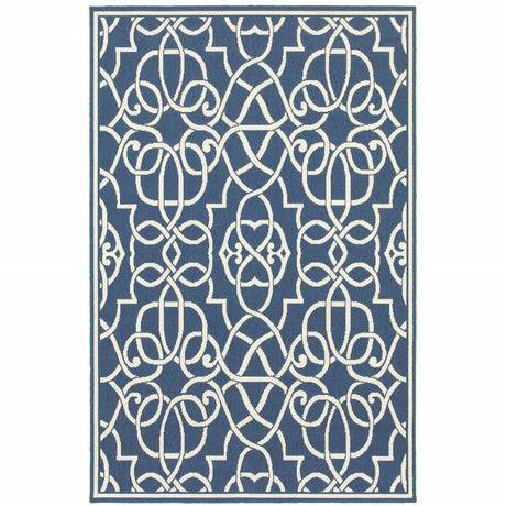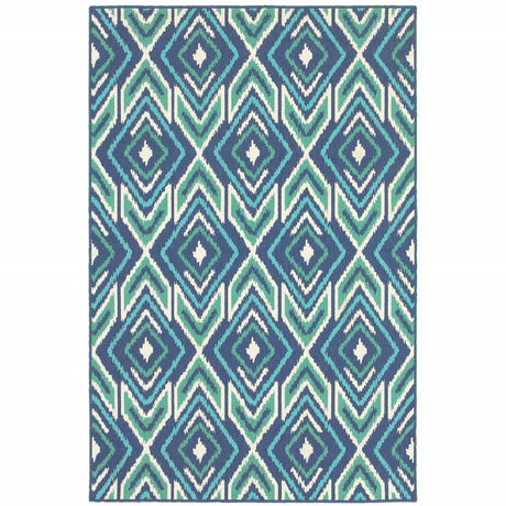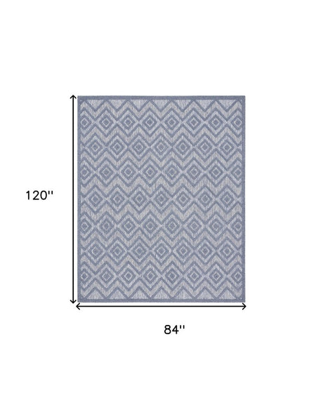 7' X 10' Blue and Ivory Geometric Stain Resistant Indoor Outdoor Area Rug
