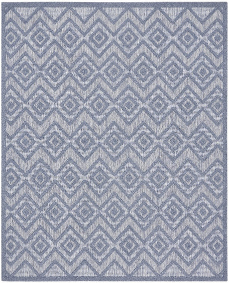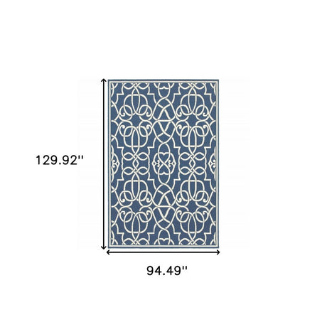 8' X 11' Blue and Ivory Geometric Stain Resistant Indoor Outdoor Area Rug