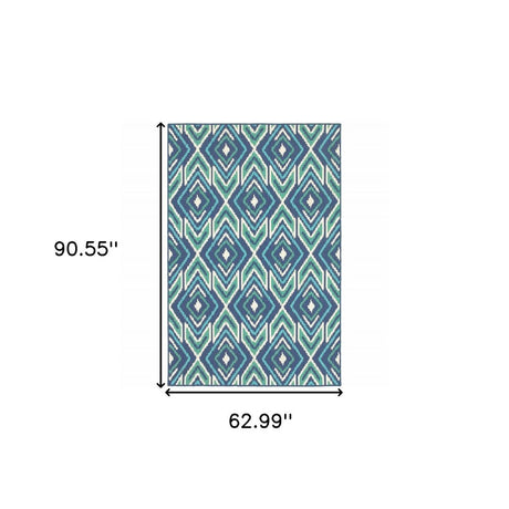 5' X 8' Blue and Ivory Geometric Stain Resistant Indoor Outdoor Area Rug