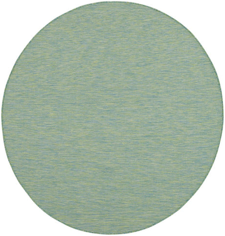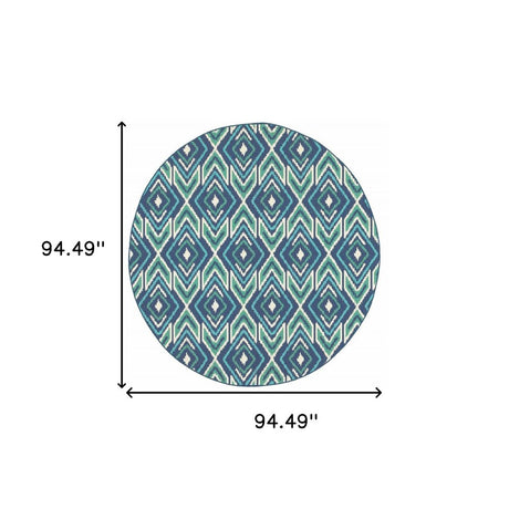 8' X 8' Blue and Green Round Geometric Stain Resistant Indoor Outdoor Area Rug