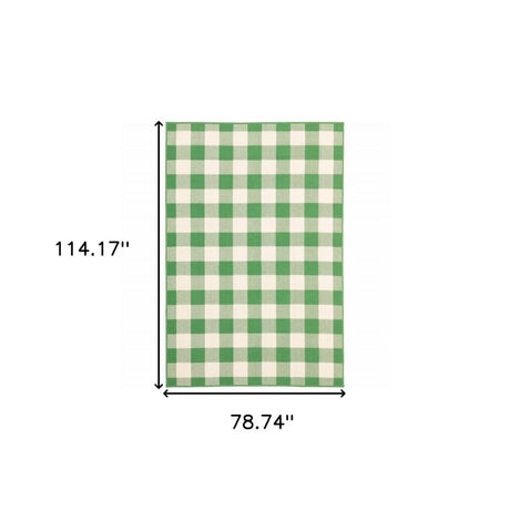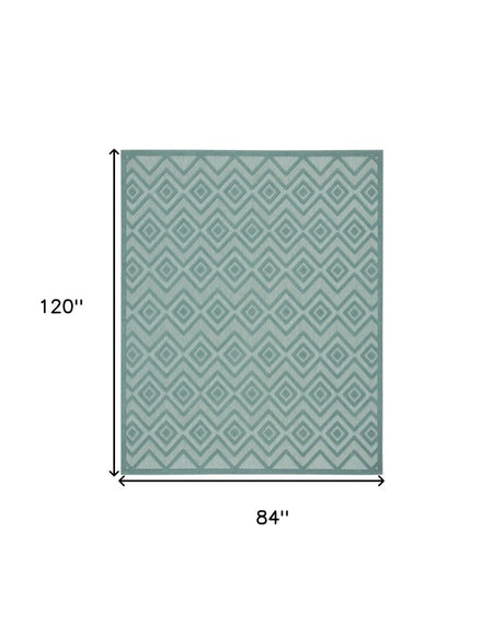 7' X 10' Green and Ivory Geometric Stain Resistant Indoor Outdoor Area Rug