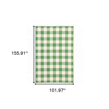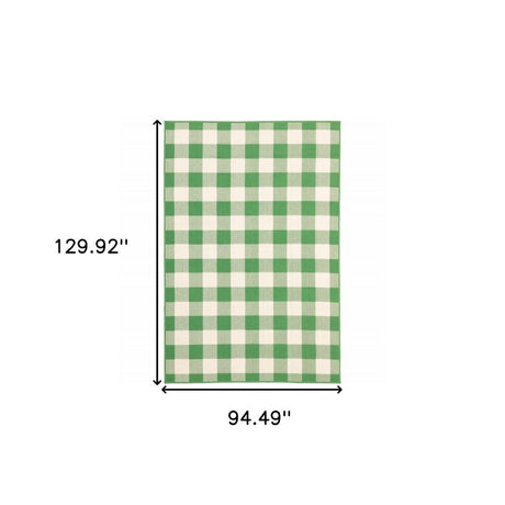 8' X 11' Green and Ivory Geometric Stain Resistant Indoor Outdoor Area Rug