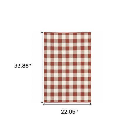 2' X 3' Red and Ivory Geometric Stain Resistant Indoor Outdoor Area Rug