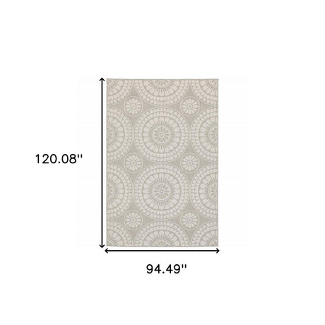 8' X 10' Ivory And Silver Indoor Outdoor Area Rug