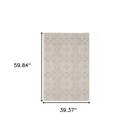 3' X 5' Gray and Ivory Floral Stain Resistant Indoor Outdoor Area Rug