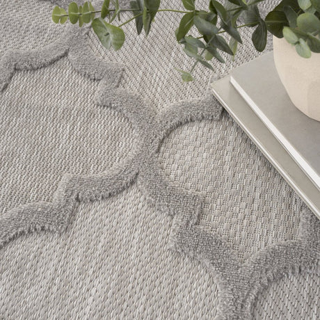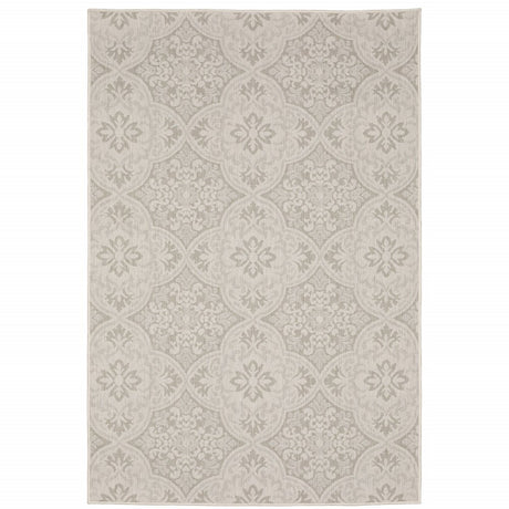 8' x 10' Gray and Ivory Geometric Stain Resistant Indoor Outdoor Area Rug
