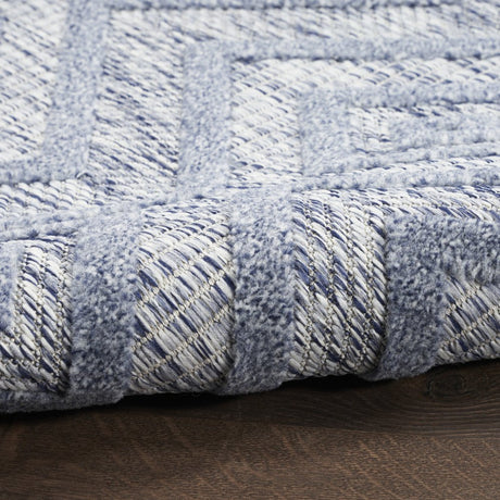 9' X 13' Blue and Ivory Geometric Stain Resistant Indoor Outdoor Area Rug