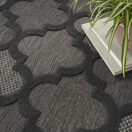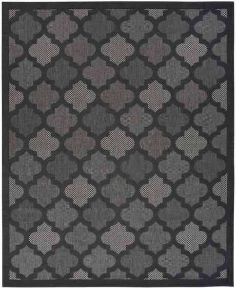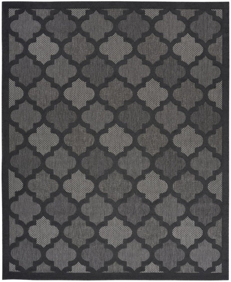 7' X 10' Black and Tan Oriental Stain Resistant Indoor Outdoor Area Rug