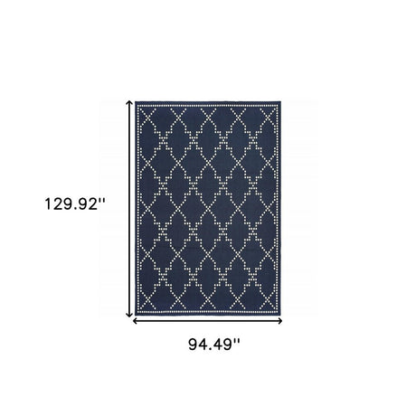 7' X 10' Blue and Ivory Geometric Stain Resistant Indoor Outdoor Area Rug