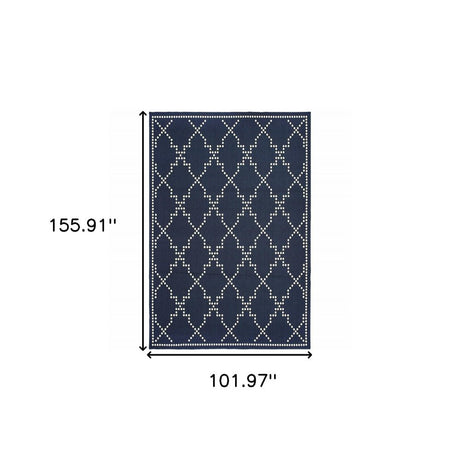 9' X 13' Blue and Ivory Geometric Stain Resistant Indoor Outdoor Area Rug