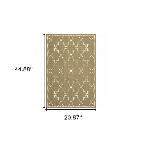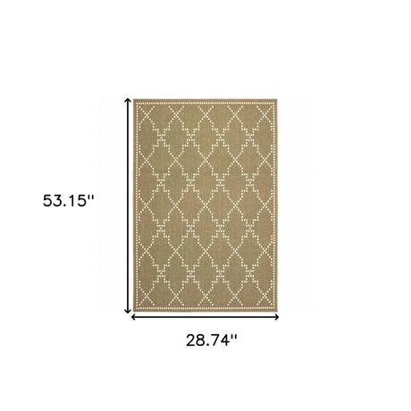 2' X 4' Tan Geometric Stain Resistant Indoor Outdoor Area Rug