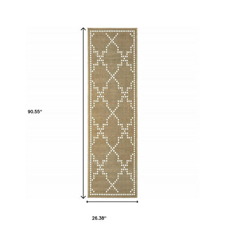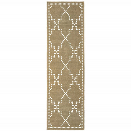2' X 8' Tan Geometric Stain Resistant Indoor Outdoor Area Rug