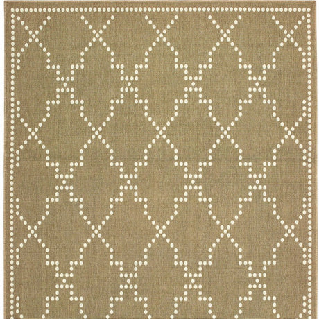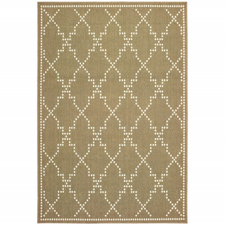 7' X 10' Tan Geometric Stain Resistant Indoor Outdoor Area Rug