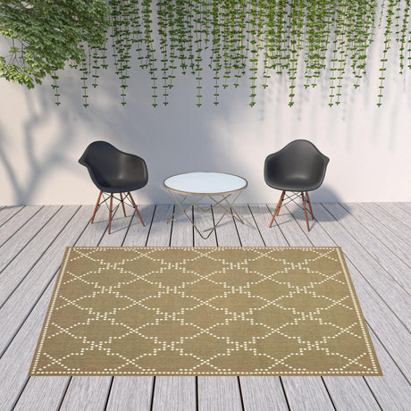 5' X 8' Tan Geometric Stain Resistant Indoor Outdoor Area Rug
