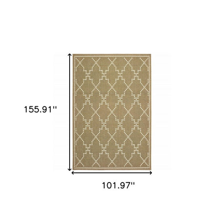9' X 13' Tan Geometric Stain Resistant Indoor Outdoor Area Rug