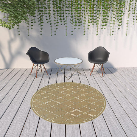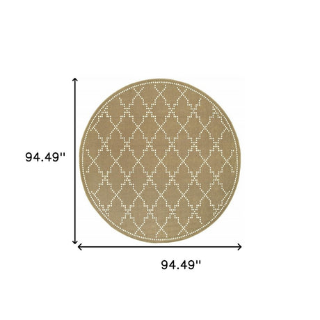 8' X 8' Tan Round Geometric Stain Resistant Indoor Outdoor Area Rug
