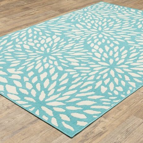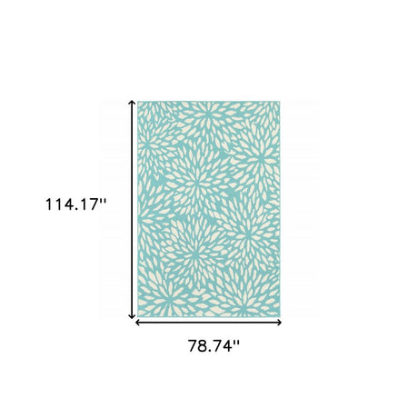 5' X 8' Blue and Ivory Floral Stain Resistant Indoor Outdoor Area Rug