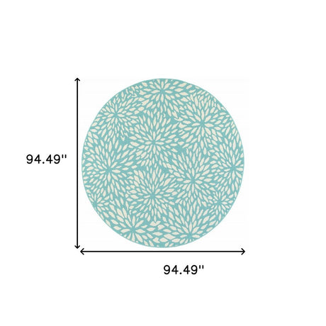 8' X 8' Blue and Ivory Round Floral Stain Resistant Indoor Outdoor Area Rug