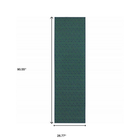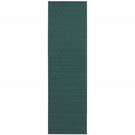2' X 8' Blue and Green Geometric Stain Resistant Indoor Outdoor Area Rug