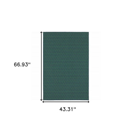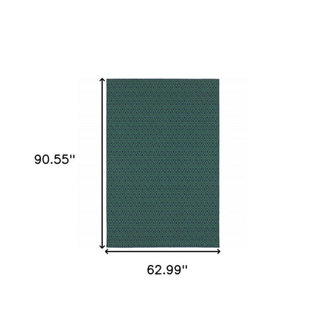 5' X 8' Blue and Green Geometric Stain Resistant Indoor Outdoor Area Rug