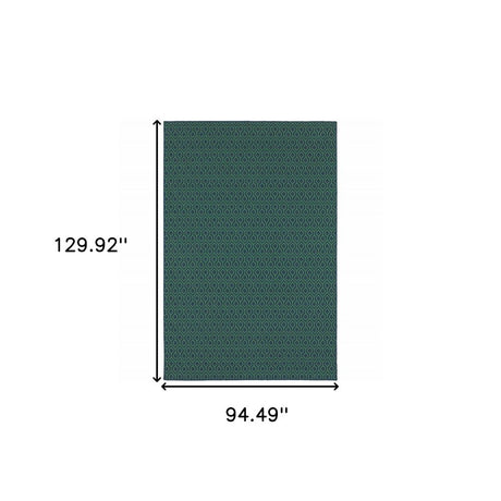 7' X 10' Blue and Green Geometric Stain Resistant Indoor Outdoor Area Rug