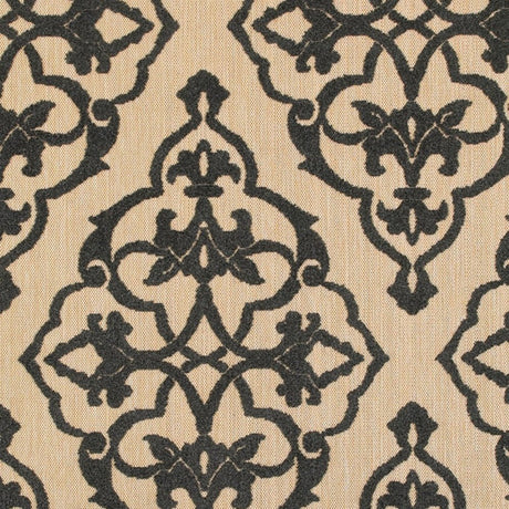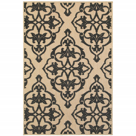 5' X 8' Beige and Black Medallion Stain Resistant Indoor Outdoor Area Rug