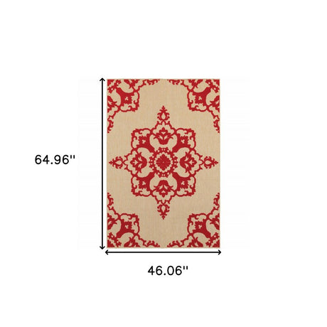 4' X 5' Red Oriental Stain Resistant Indoor Outdoor Area Rug