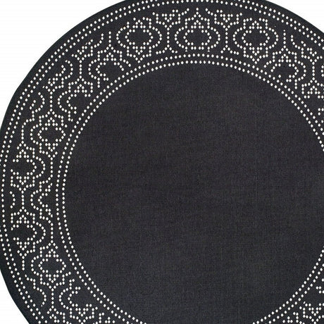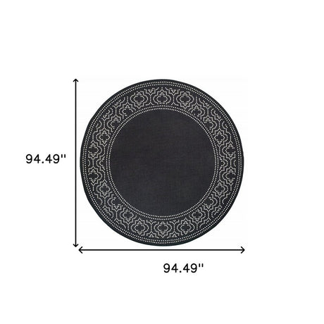 8' X 8' Black and Ivory Round Stain Resistant Indoor Outdoor Area Rug