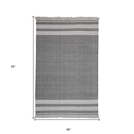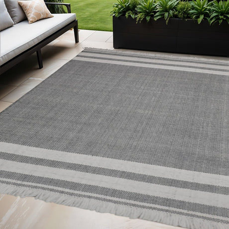 5' X 7' Dark Gray Striped Handmade Indoor Outdoor Area Rug