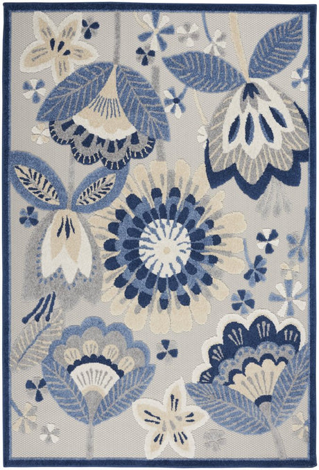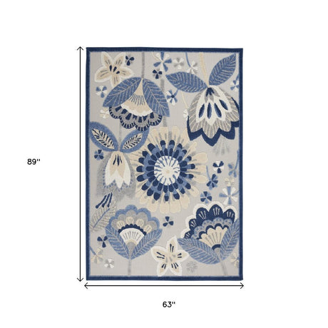 4' X 6' Blue And Gray Indoor Outdoor Area Rug