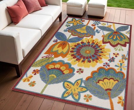 8' X 11' Yellow And Ivory Indoor Outdoor Area Rug