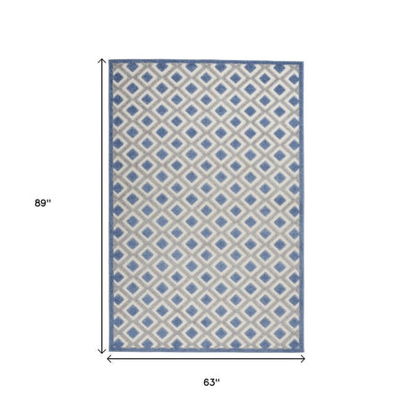 5' X 8' Blue and Beige Geometric Stain Resistant Indoor Outdoor Area Rug