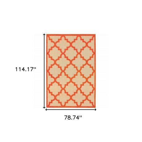 7' X 10' Orange Geometric Stain Resistant Indoor Outdoor Area Rug