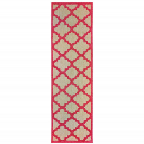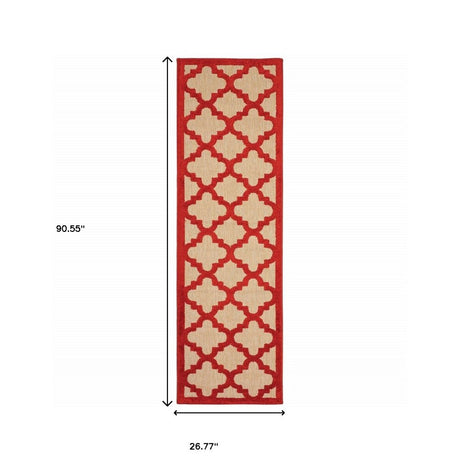2' X 8' Red Geometric Stain Resistant Indoor Outdoor Area Rug